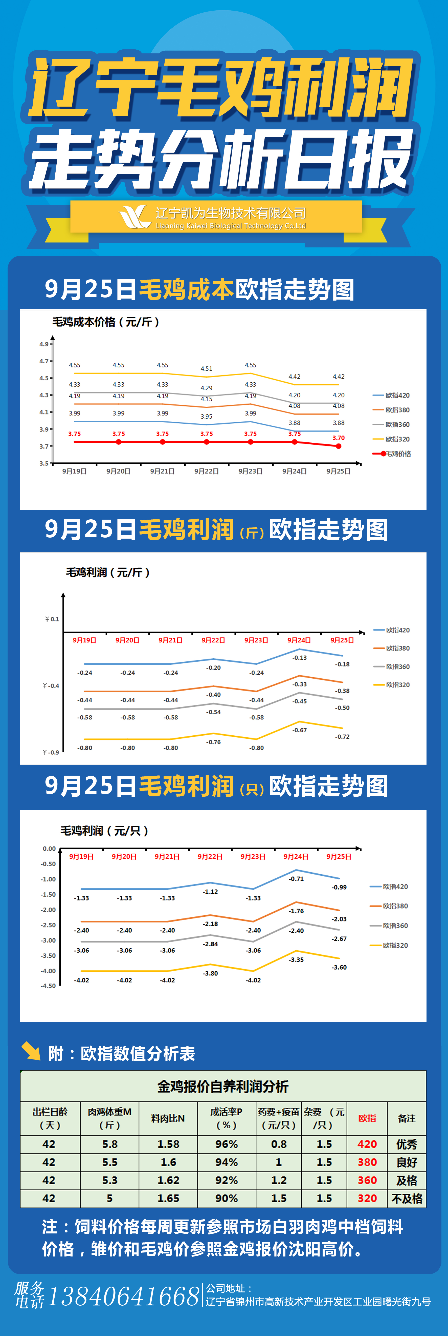 9月25日遼寧地區(qū)毛雞利潤走勢(shì)分析圖