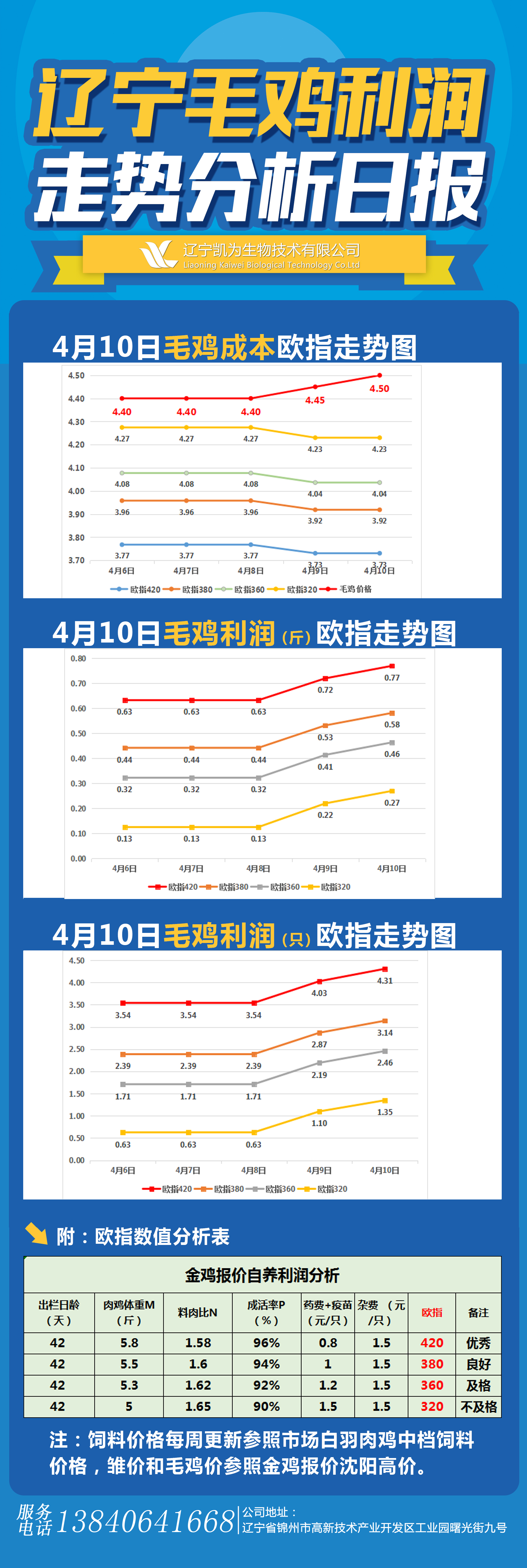 4月10日遼寧地區(qū)毛雞利潤走勢分析圖