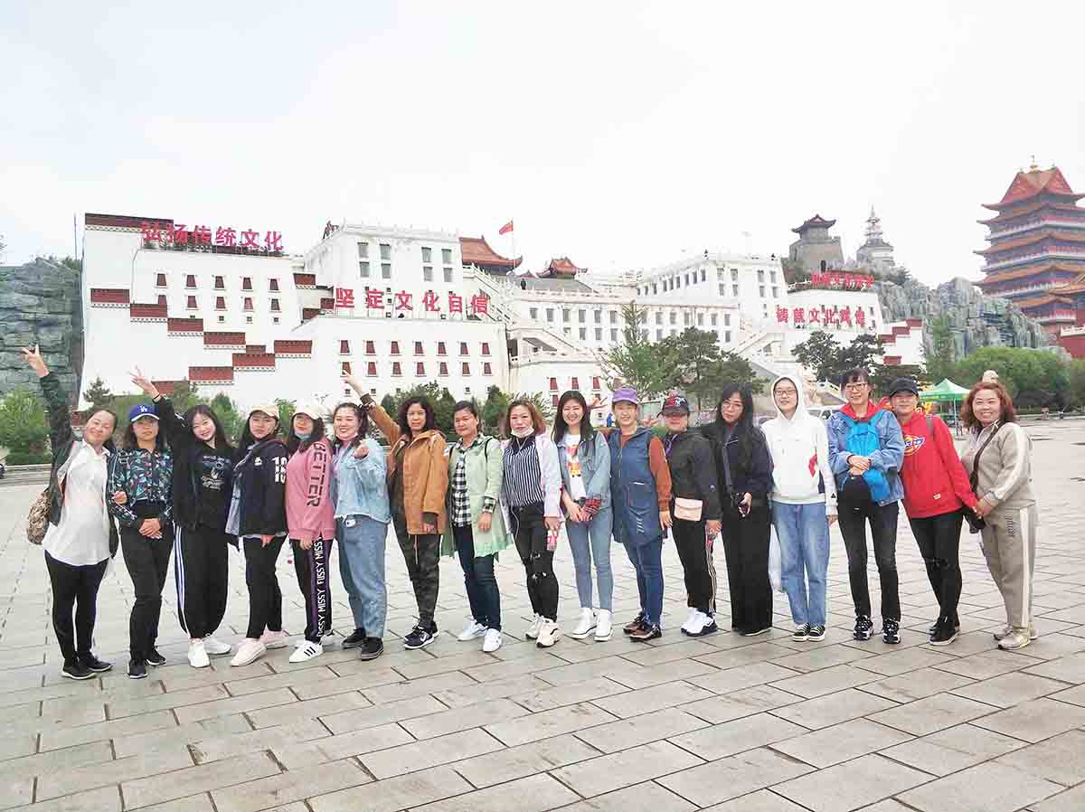 征服九華山頂峰之后,我們順勢而下,游覽了著名的慈海寺。學(xué)著周圍虔誠燒香拜佛的樣子,我們滿懷虔誠,感受著古代建筑的大氣與恢弘,也為自己許下美好的愿望。我們接著向小布達(dá)拉宮出發(fā)了。一路我們徒步前進(jìn),小白因?yàn)槠綍r(shí)鍛煉的少,在下山的時(shí)候走的太急,腳抽筋了,經(jīng)驗(yàn)豐富的李主管立刻上來按摩,還囑咐多甩一甩腿。多虧她的悉心照顧,小白的腳好多了,不影響繼續(xù)步行。小白打趣說“自從來到九華山,腰不疼了,腿不抽了,心也不跳了,感覺越來越年輕!”大家都笑了,氣氛十分活躍。大家心情舒暢,開心地笑著、玩著,互相交流著,活動氣氛熱烈,歡聲笑語聲在山林中飄蕩。沒多久我們就來到了小布達(dá)拉宮,領(lǐng)略西域文化的洗禮,感受別樣風(fēng)情。