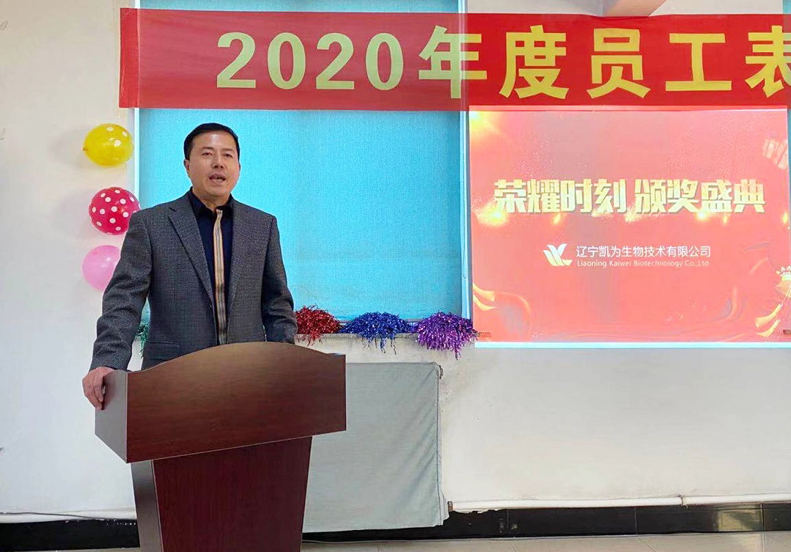 2021年1月9日,遼寧凱為生物技術(shù)有限公司2020年員工表彰大會(huì)于公司總部會(huì)議室成功召開(kāi),公司各級(jí)領(lǐng)導(dǎo)及全體員工應(yīng)邀參會(huì)。表彰大會(huì)首先由公司總經(jīng)理王鐵良致2021年新年賀詞,隨后分別頒發(fā)了生產(chǎn)部?jī)?yōu)秀員工獎(jiǎng)、六年貢獻(xiàn)獎(jiǎng)、十年貢獻(xiàn)獎(jiǎng)和行政優(yōu)秀員工獎(jiǎng)四個(gè)獎(jiǎng)項(xiàng)。